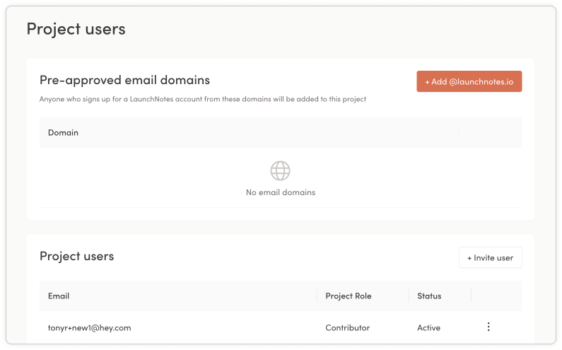 Today we rolled out pre-approved domain matching. We’re super excited about this upgrade, as it solves something that we know has been a bit of a headache for admins and contributors alike. With pre-approved domain matching enabled, when a user from your organization signs into LaunchNotes with the company email address they will be recognized and automatically added as a contributor to the appropriate project.
